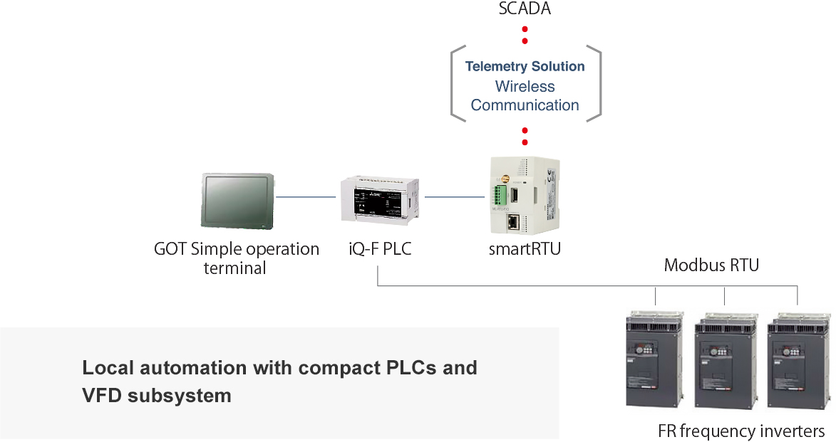 Mitsubishi Electric offers an extensive lineup of equipment to provide the ideal local automation solution for a variety of needs. For example, our compact PLC for systems with limited signal scoring helps reduce system costs. We also offer highly reliable communications equipment optimized for remote monitoring.