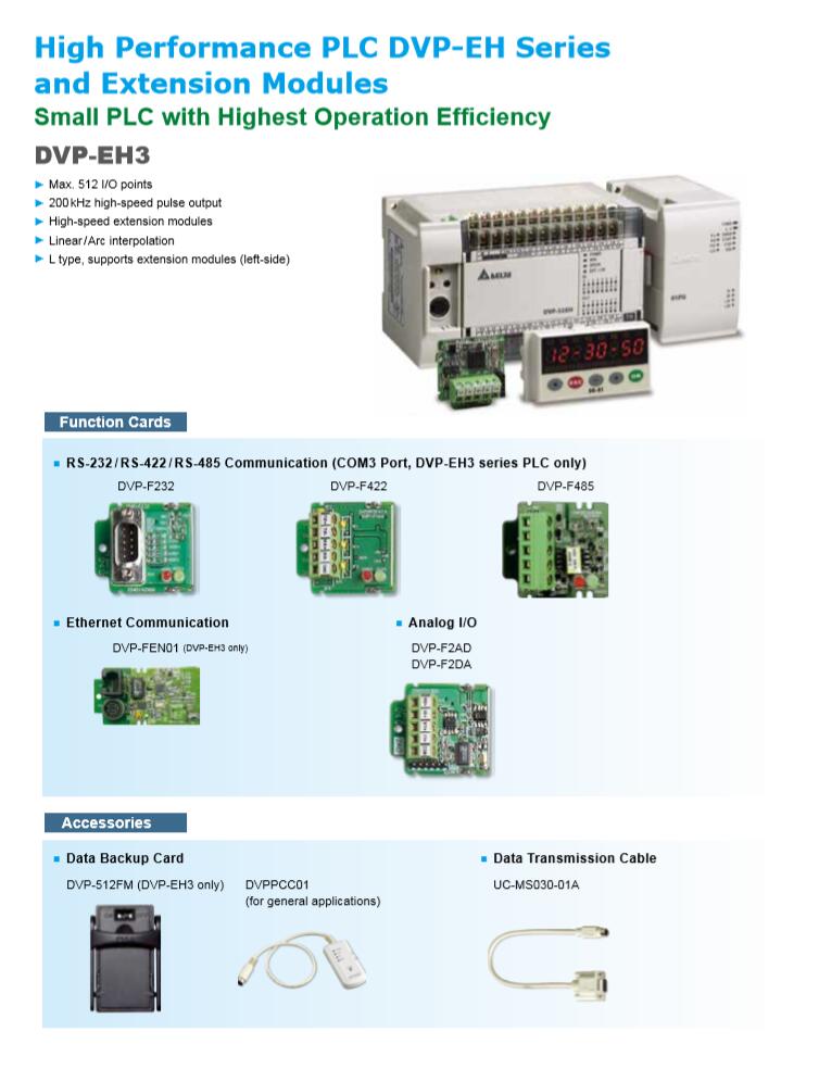 • Product description: Dvp32eh00t3/Dvp20eh00t3/Dvp16eh00t3/Dvp40eh00t332 Point Host, 16di / 16do (NPN / 24VDC / 0.3A) , 4 Channels of 200K Input / 4 Channels of 200K Output