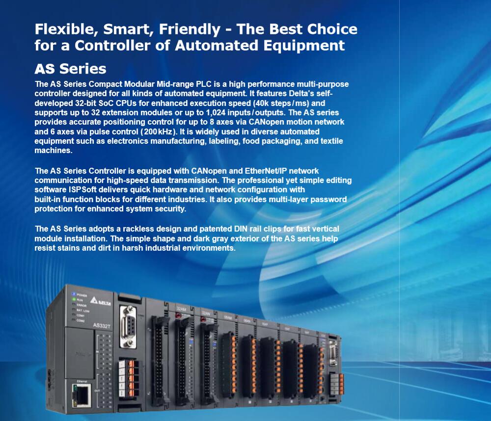 Product description: As332p-a/16di, 16do (NPN) , 6 Groups of 200K Ab Phase Input, 6 Axes of 200K Ab Phase Output, 128K Step Capacity, Built-in Ethernet Port, RS485X2, Micro SD Card,