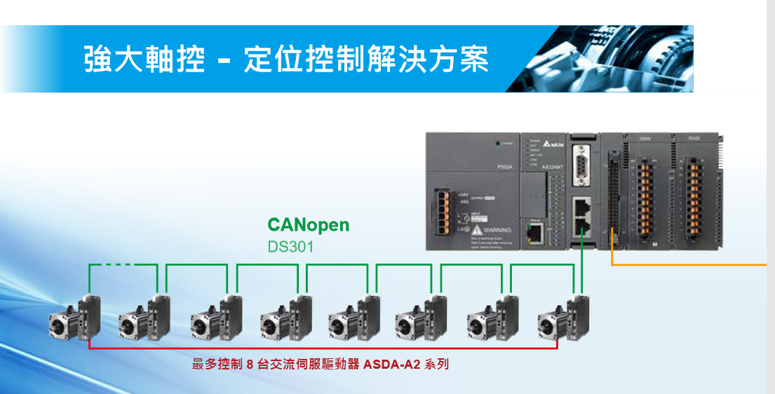 Delta's DVP series programmable logic controllers offer high-speed, stable and highly reliable applications in all kinds of industrial automation machines. In addition to fast logic operation, bountiful instructions and multiple function cards, the cost-effective DVP-PLC also supports various communication protocols, connecting Delta's AC motor drive, servo, human machine interface and temperature controller through the industrial network in to a complete "Delta Solution" for all users