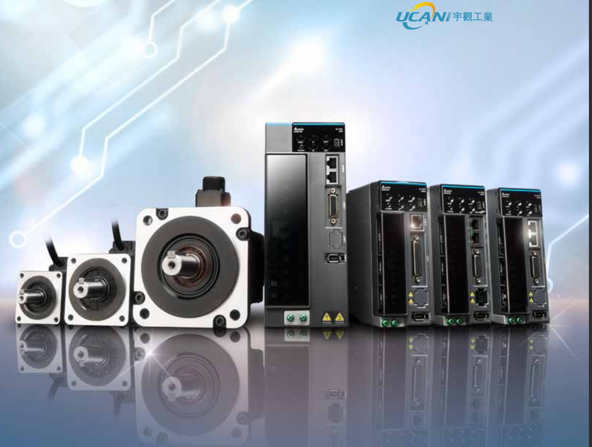 The AB series is a high performance digital servo system with advanced functions and supports various motor options including low, medium and high inertia servo motors to meet different application needs. It offers many motion control functionalities for a wide range of industry and machine applications, as well as provided in the A series. In addition, the AB series implements Modbus communication protocol as a standard, to connect with Delta's programmable logic controller (PLC) and human machine interface (HMI), and establish the advanced architecture of the communication control system. Major applications include a vast range of machine tools and processing machines for various industries.