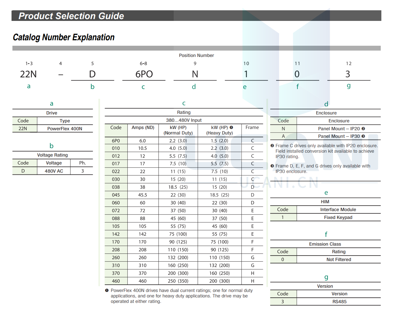 380…480V: 2.2…250 kW / 3…350 Hp / 6…460 A
