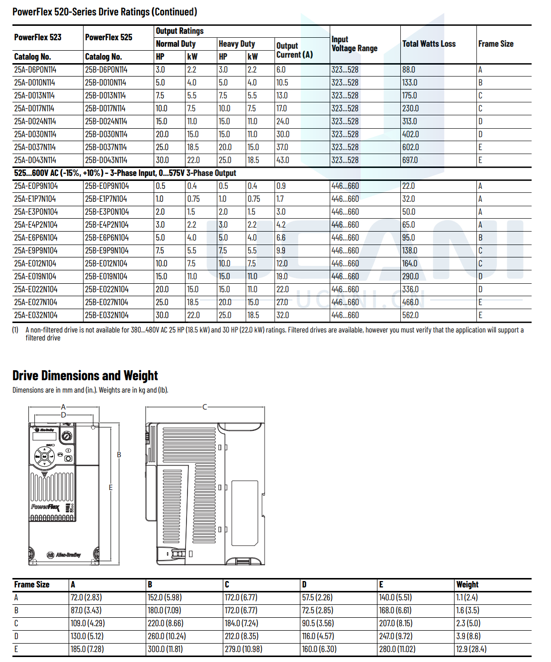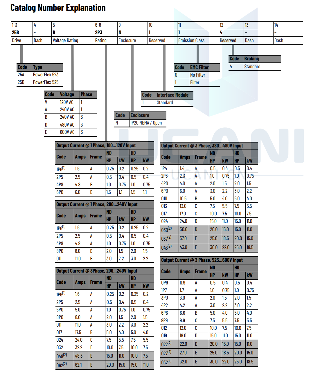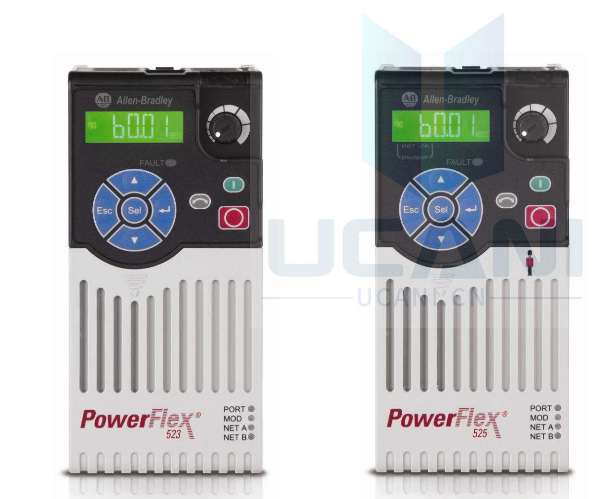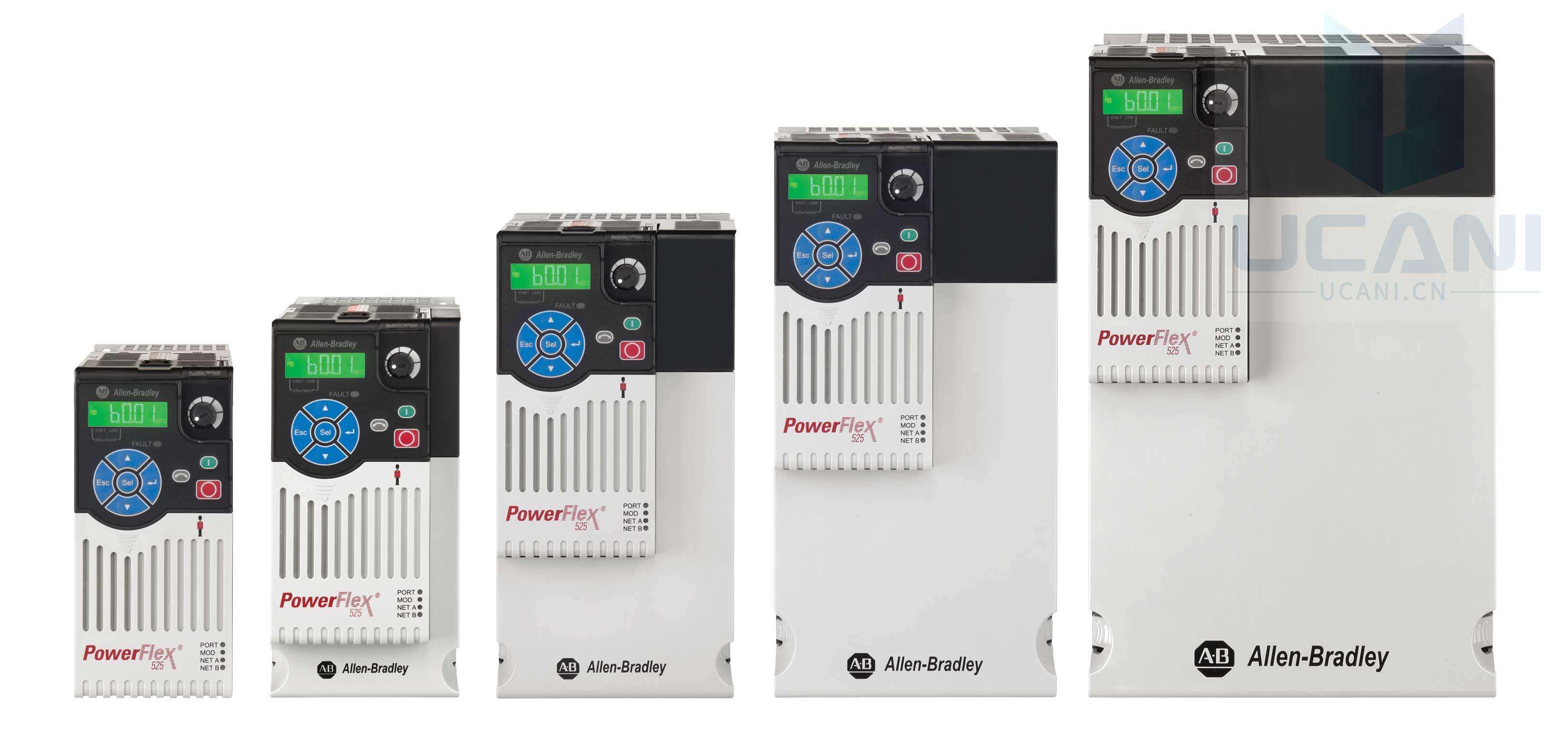 Our PowerFlex® 525 AC Drives feature an innovative, modular design to support fast and easy installation and configuration. This next generation of compact drives offers embedded EtherNet/IP™ communications, USB programming, and standard safety features. PowerFlex 525 drives, which offer a power rating of 0.4...22 kW (0.5...30 Hp) with global voltage classes of 100...600V, provide a variety of motor control and flexible mounting options. PowerFlex 525 AC drives operate at temperatures as high as 70 °C (158 °F), and they are ideal for applications such as conveyors, fans, pumps, and mixers.
