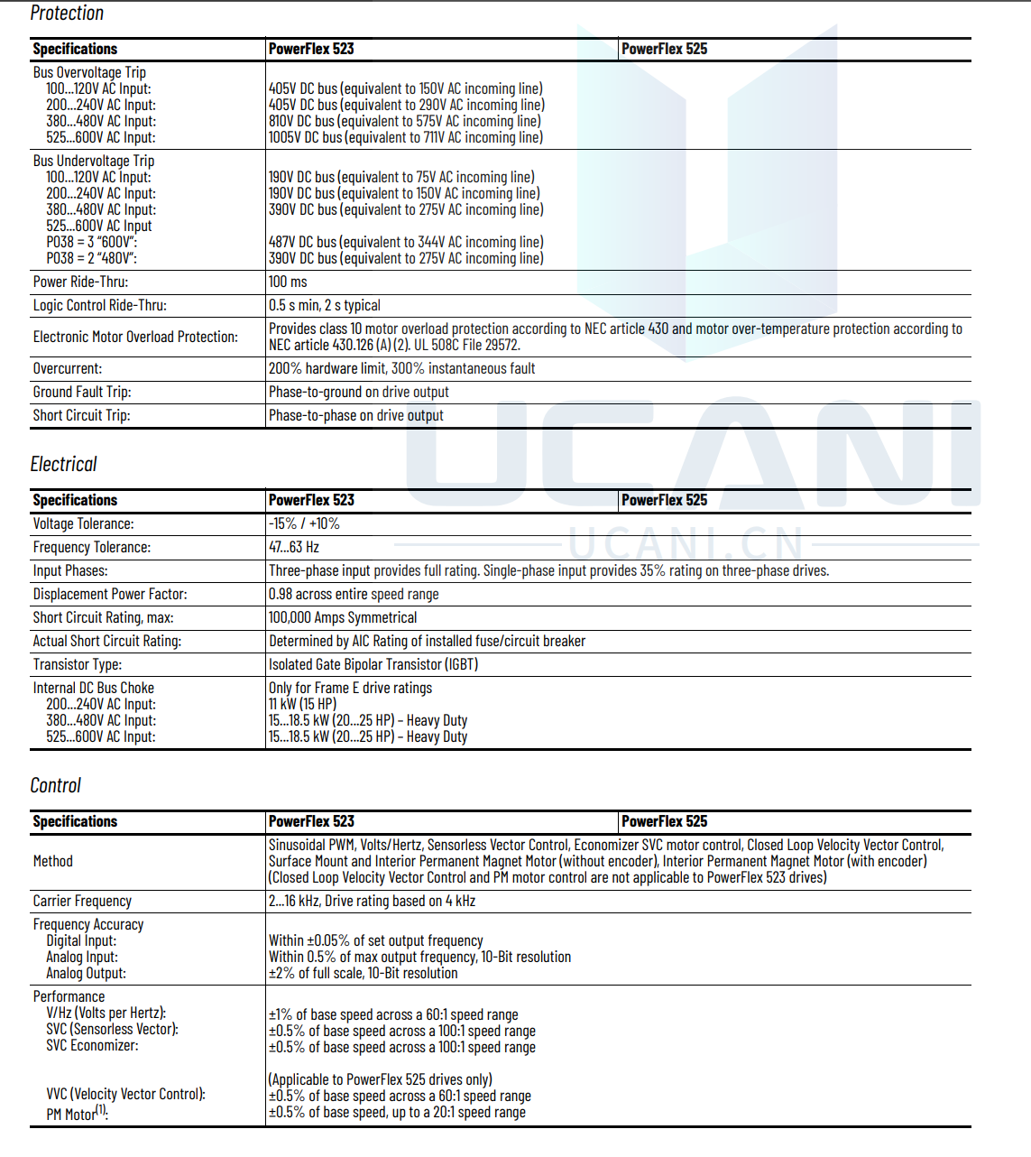 Our PowerFlex® 523 AC Drives are cost-effective and ideal for standalone machines. These drives provide an innovative, modular design that supports fast and easy installation and configuration. In addition, they offer USB programming, application-specific configuration, and flexible mounting options. PowerFlex 523 AC drives offer a power rating of 0.2...22 kW (0.25...30 Hp) with global voltage classes of 100...600V. They support a wide range of motor control, offer a compact footprint, and operate at temperatures as high as 70 °C (158 °F).